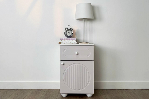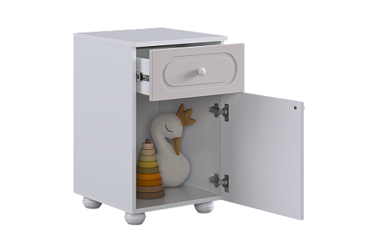 Милана Тумба (с ящиком) — универсальный модуль для детской комнаты, который может использоваться как прикроватная тумба или как компактный комод. Практичное сочетание ящика и закрытого отделения позволяет удобно хранить как мелкие, так и более объёмные вещи.
