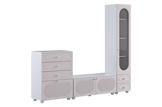 Гостиная "Милана К1" белое дерево/сакура из каталога Модульные гостиные купить в Воронеже в магазине мебели онлайн Мебельсон по цене 44 770 ₽