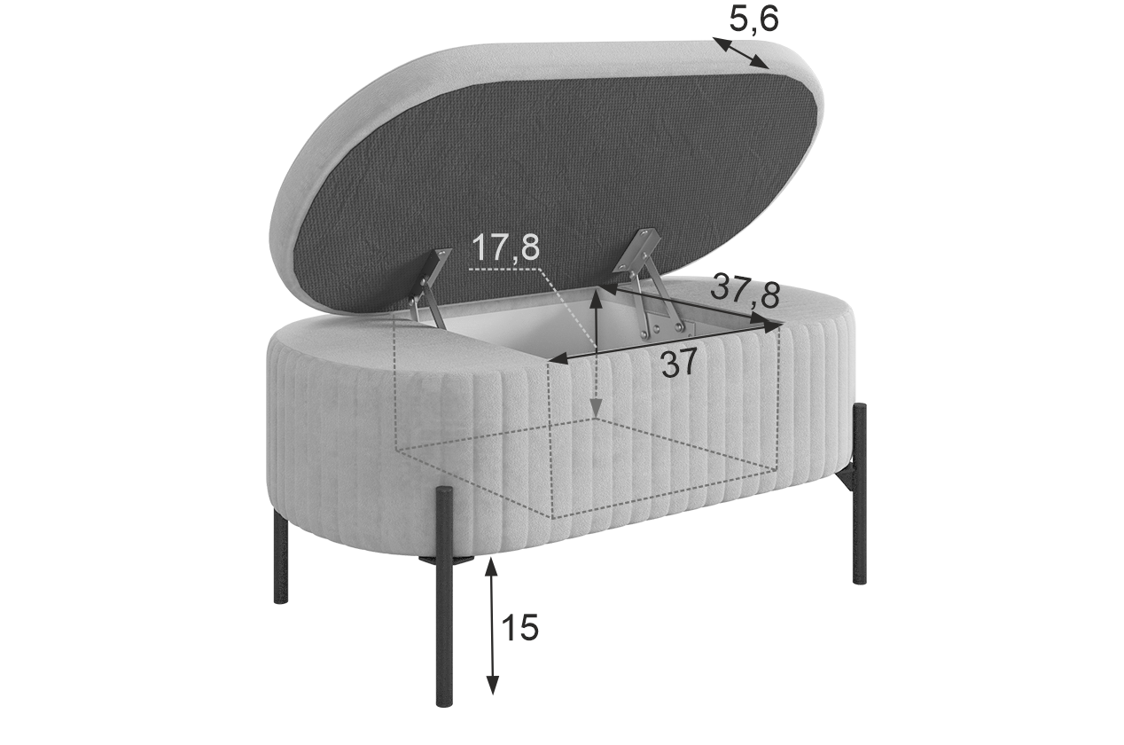 Внутри пуфа находится вместительное пространство для хранения, где вы можете разместить различные предметы, например, книги или косметику. Это делает пуф "Винни" не только удобным местом для отдыха, но и практичным элементом интерьера.
