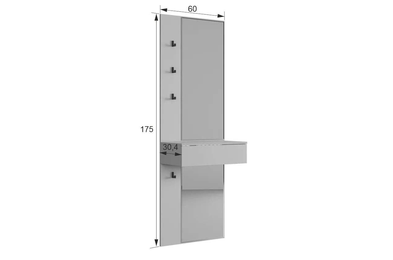 Крючки предоставляют удобное место для хранения сумок или аксессуаров. Выкатной ящик служит дополнительным пространством для хранения мелочей, таких как ключи, кошелек, косметика или другие небольшие предметы.