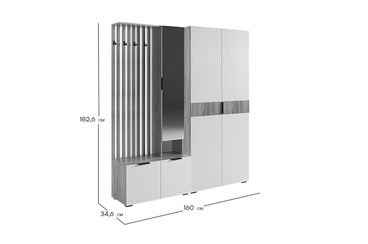 Прихожая "Бери К3" (1600х350х1826) (дуб крафт золотой/белое дерево)