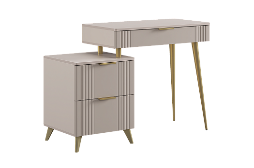 Представляем вам элегантный и функциональный туалетный столик «Катрин Голд»! Этот предмет мебели станет стильным дополнением к вашей спальне и предоставит удобное место для хранения вещей, а также может использоваться как письменный стол.