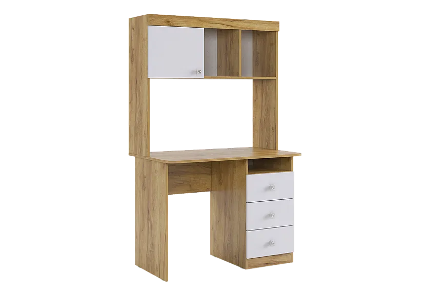 - Столы с надстройкой — обычно имеют больше полочек или выдвижных ящиков для удобного хранения школьных принадлежностей.