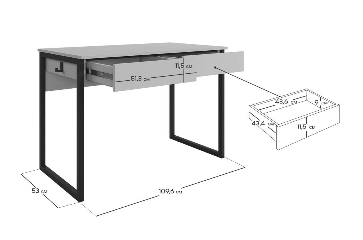 Состоит из: Столешницы на опорах с 2-мя выкатными ящиками