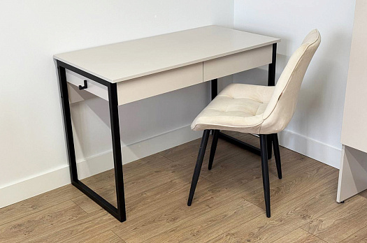 Стол на металлических опорах с двумя выкатными ящиками на шариковых направляющих, усиленный и надежный каркас, благодаря металлическому ребру жесткости под столешницей,