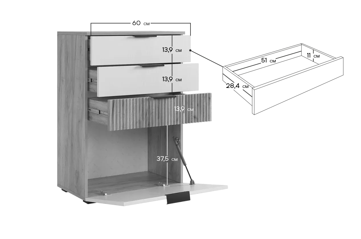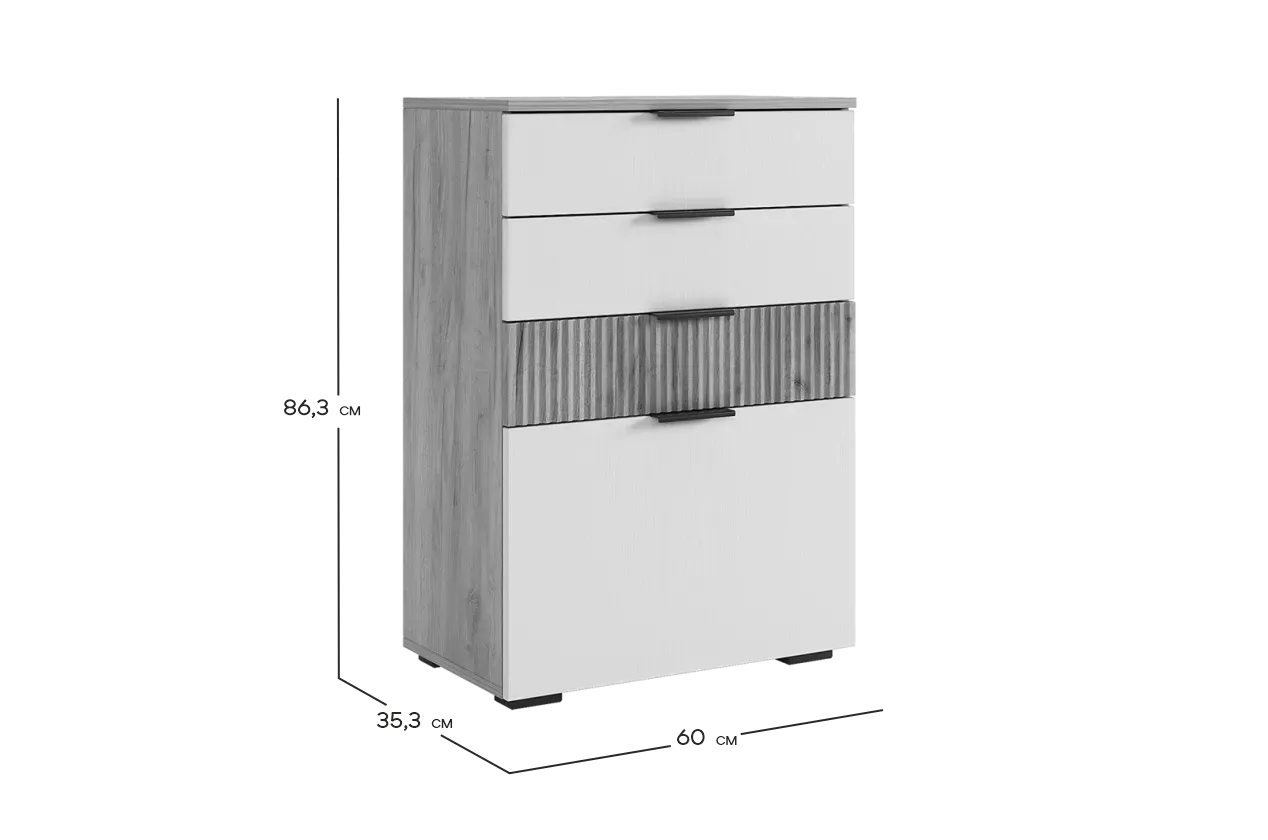 Покупал комод в дополнение к шкафу из той же серии "Бери". Цветовое решение идеально совпадает, получился гармоничный комплект. Комод компактный, но вместительный - 3 выдвижных ящика и закрытая секция позволяют разложить вещи по категориям. Направляющие качественные, ящики выдвигаются легко и бесшумно, закрытая секция - большая. Хорошее качество за разумную цену!