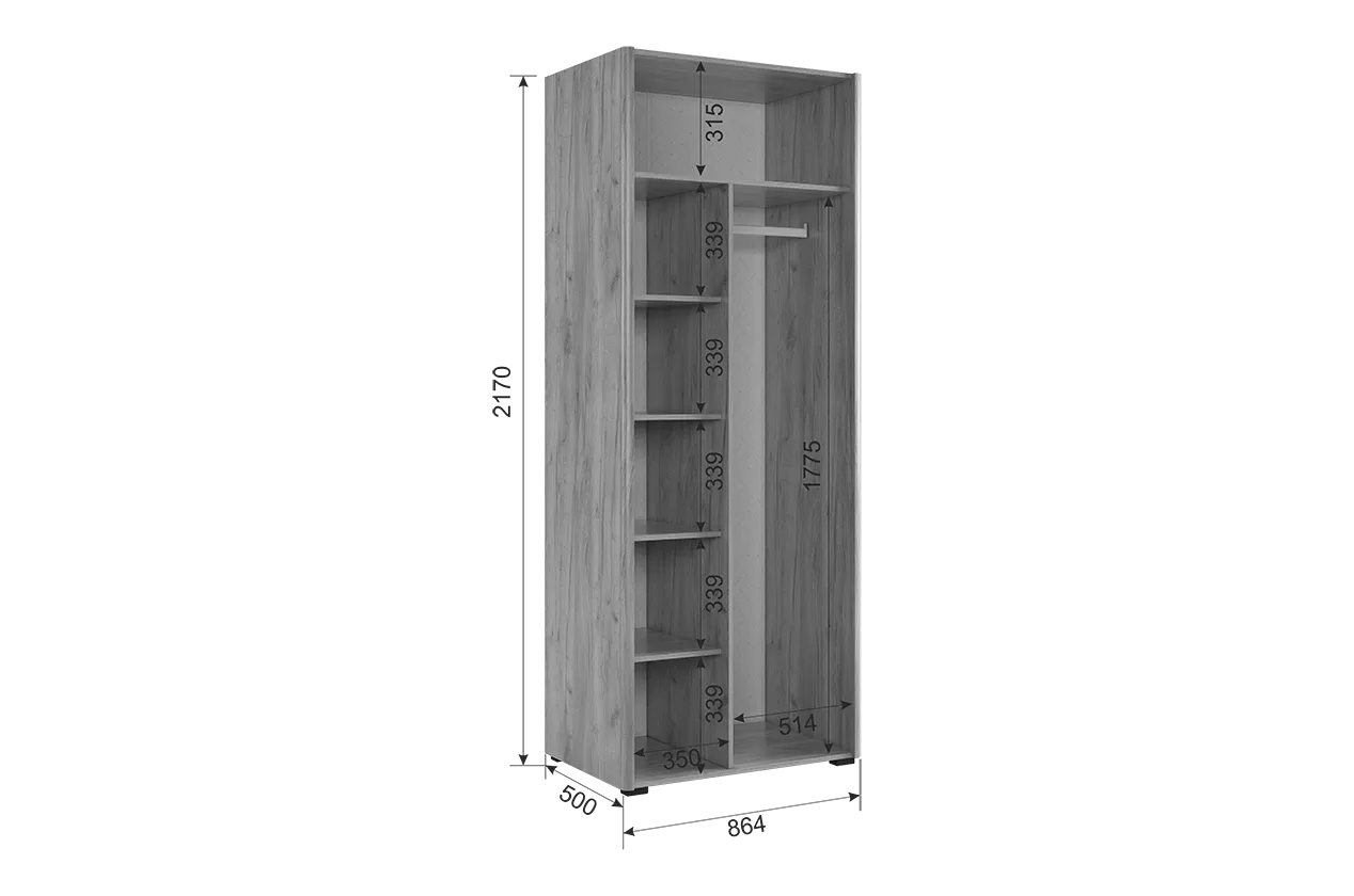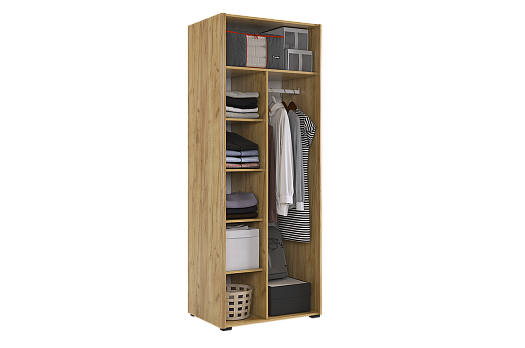 Компактный, но вместительный шкаф имеет полки и штангу для одежды, а полукруглые, обтекаемые углы обеспечат безопасность и комфорт.