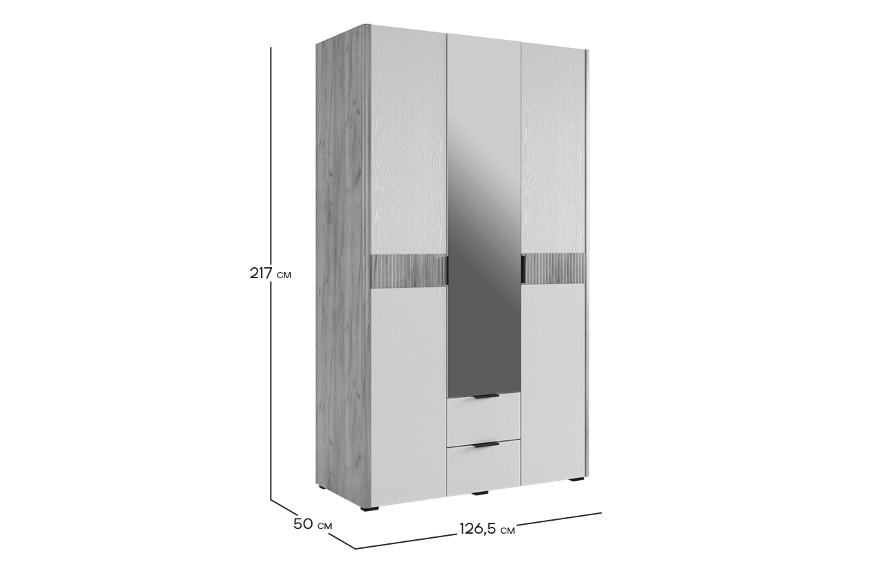 Адам Шкаф трехдверный (зеркало) дуб крафт золотой/белое дерево из каталога Шкафы купить в Воронеже в магазине мебели онлайн Мебельсон по цене 42 290 ₽