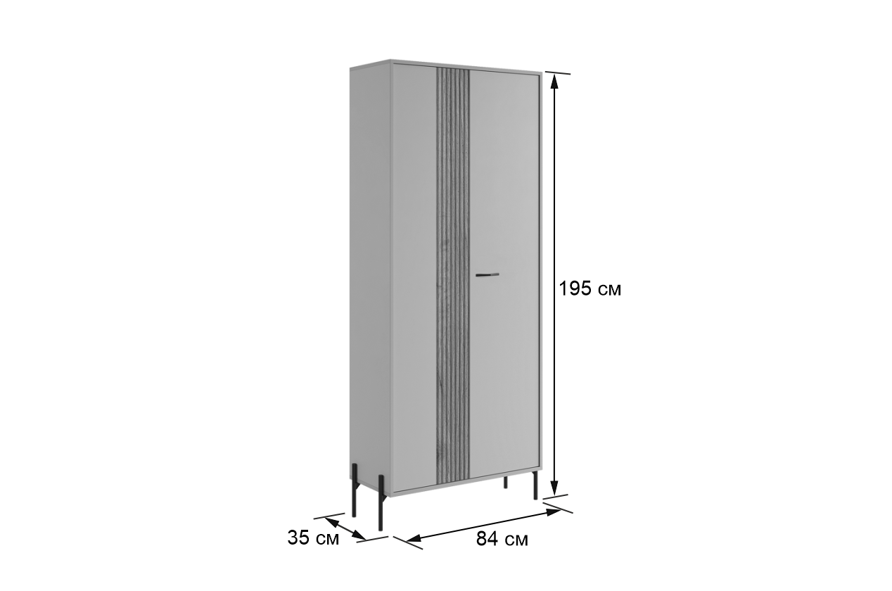 Шкаф "Доминика" оснащен глухими фасадами, скрывающими за собой просторное внутреннее пространство. На одной стороне шкафа находится штанга для одежды, обеспечивая удобное место для хранения одежды на вешалках.