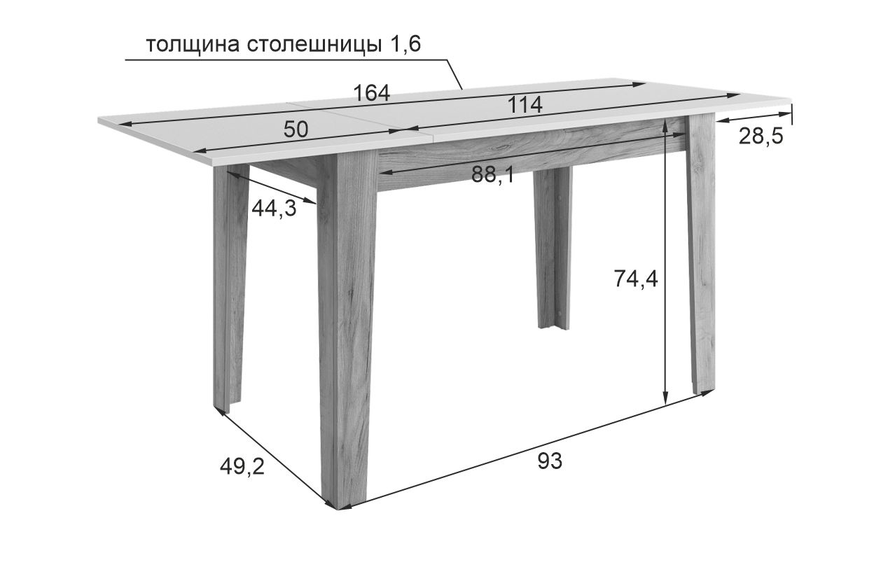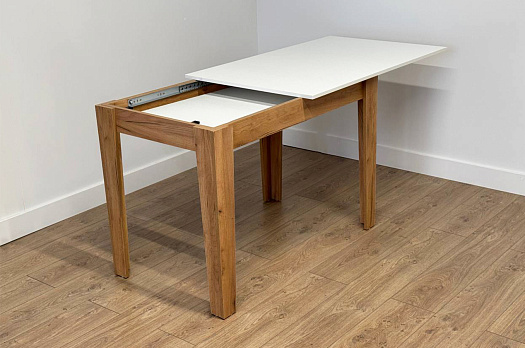 * благодаря раздвижному механизму стол легко превращается из компактного в просторный вариант;