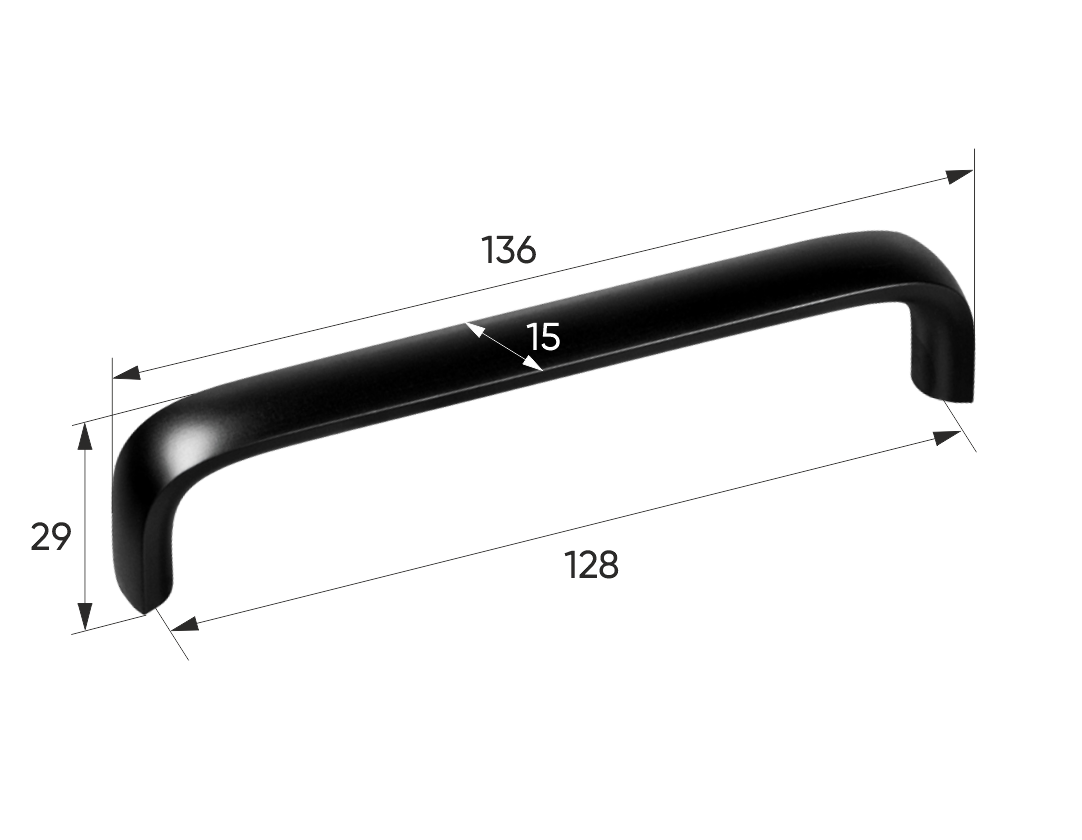 Ручка 0026 (128) черный матовый из каталога Кухонные ручки купить в Воронеже в магазине мебели онлайн Мебельсон по цене 220 ₽