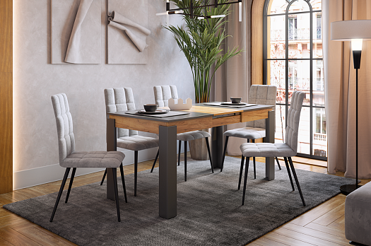 Стол обеденный раздвижной Гермес 2 графит/дуб крафт золотой из каталога Обеденные столы купить в Воронеже в магазине мебели онлайн Мебельсон по цене 11 990 ₽