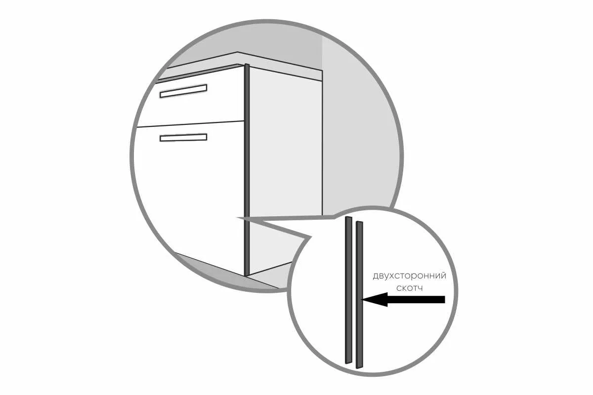 Предназначена для защиты от перегрева фасадов рабочих шкафов, стоящих рядом с плитой. Крепится к торцу рабочего шкафа на двухсторонний скотч.