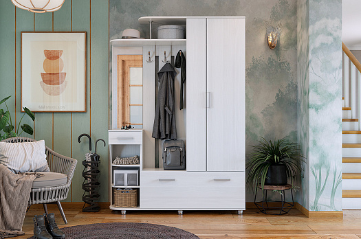 Прихожая Барселона-2: идеальное решение для максимизации пространства в вашей прихожей, объединяющее в себе все ключевые элементы для комфортного размещения одежды и аксессуаров.