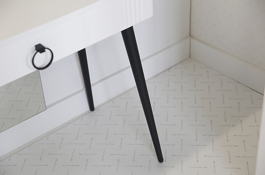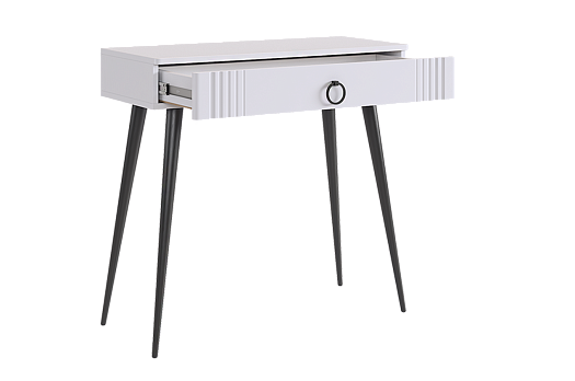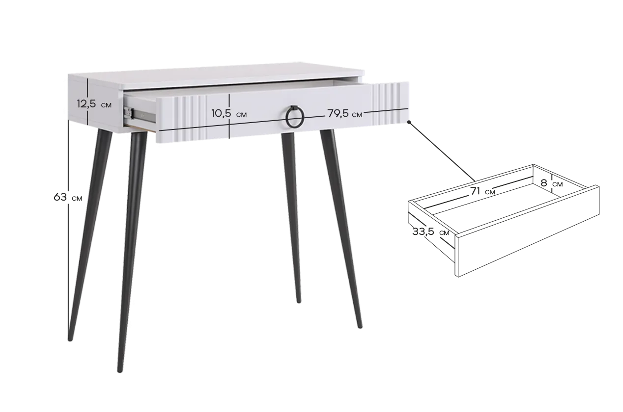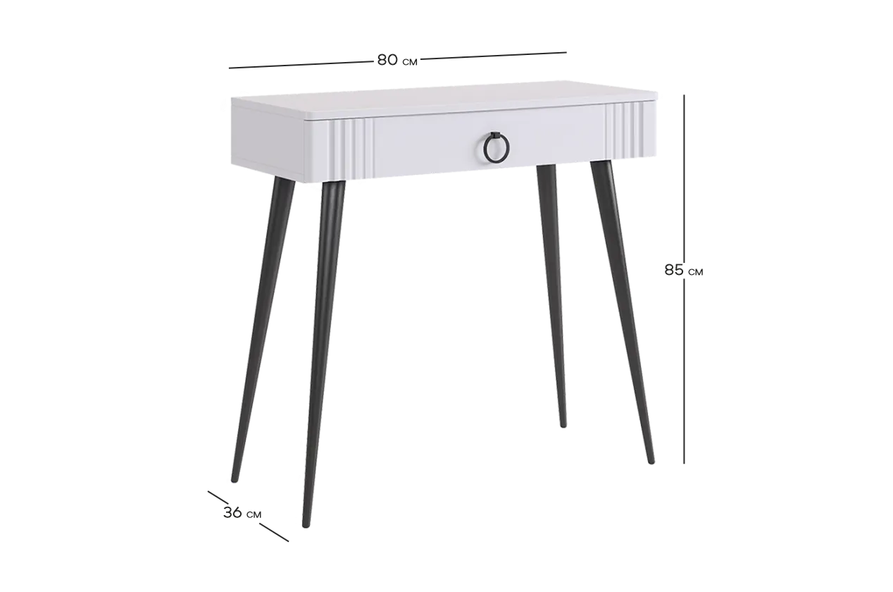 Туалетный столик 2 "Ева" – это элегантное и функциональное решение для вашей спальни. Шариковые направляющие на ящике обеспечивают плавное открывание и закрывание. Устойчивые черные опоры добавляют стиля столику.