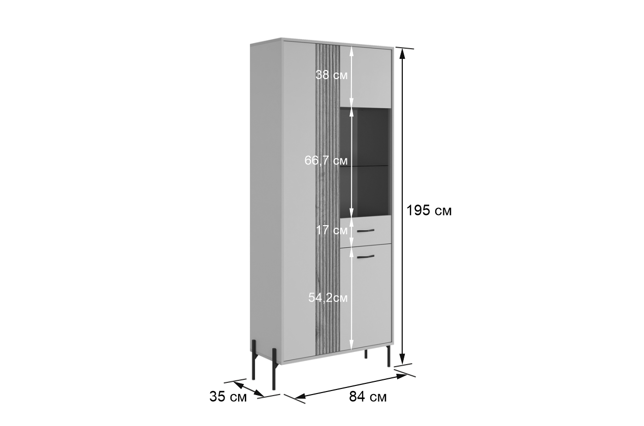 Вторая дверь, выполненная со стеклянной вставкой, позволяет демонстрировать коллекции, декоративные предметы или книги, придавая вашему пространству дополнительный шарм и элегантность.