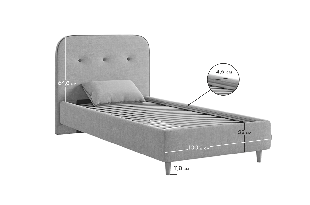 Кровать с основанием Лео 90х200 см графит (велюр)/галька (велюр) из каталога Детские кровати купить в Воронеже в магазине мебели онлайн Мебельсон по цене 22 290 ₽
