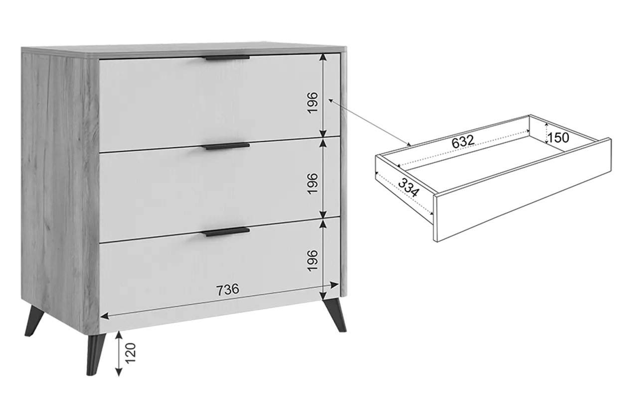 Состоит из: 3-х ящиков.