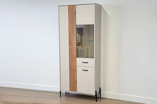 Доминика Шкаф двухдверный (со стеклом) кашемир/дуб крафт золотой из каталога Витрины купить в Воронеже в магазине мебели онлайн Мебельсон по цене 20 790 ₽