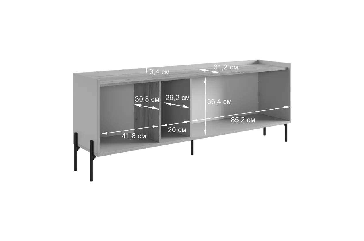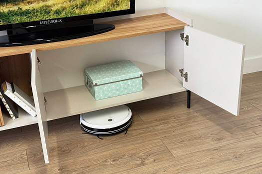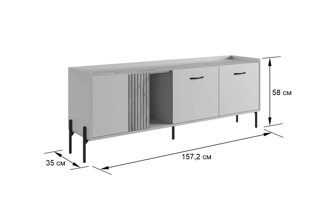 Стильные металлические ручки придают тумбе современный и модный вид. Открытая ниша обеспечивает легкий доступ к вещам, которые вы используете часто, или может служить пространством для размещения медиа-устройств.