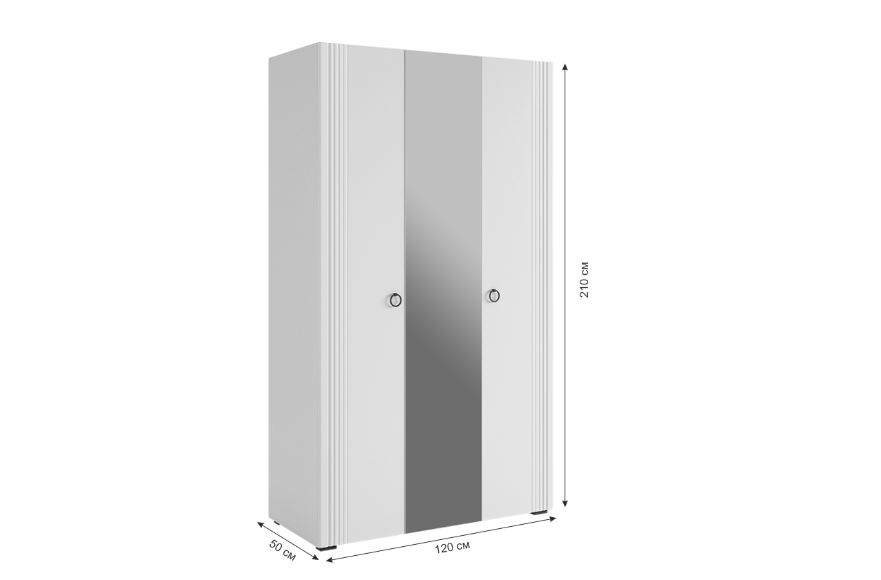 Наши товарные размеры составляют 1200х500х2100, что обеспечивает достаточно места для размещения одежды, обуви и аксессуаров. Мы делаем акцент на высоком качестве материалов: корпус изготовлен из лдсп белого дерева, фасады выполнены из мдф с облицовкой пленкой пвх белого матового цвета. Уникальный декоративный элемент - вертикальные полосы на фасаде с фрезеровкой. Петли - 4-х шарнирные с доводчиком, ножки пластиковые черные высотой 20мм, а ручки - металлические.