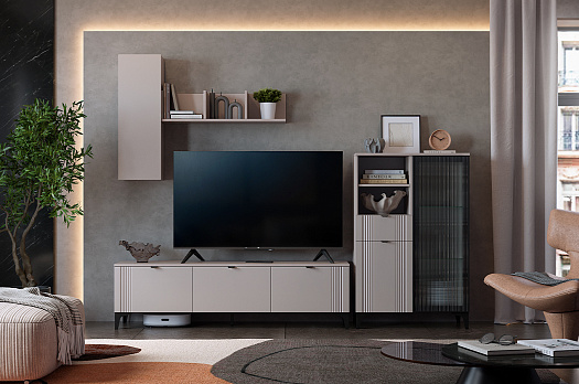Гостиная "Рич К3" (2450х425х1900 мм) кашемир/фрапучино матовый/черный из каталога Модульные гостиные купить в Воронеже в магазине мебели онлайн Мебельсон по цене 45 360 ₽