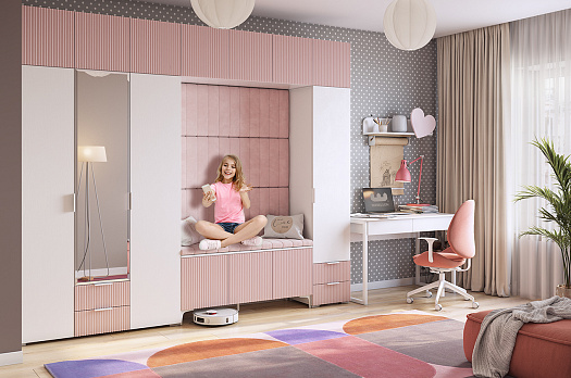 Зефир Шкаф однодверный 107.01 белое дерево/пудра розовая (эмаль) из каталога Детские шкафы купить в Воронеже в магазине мебели онлайн Мебельсон по цене 14 970 ₽